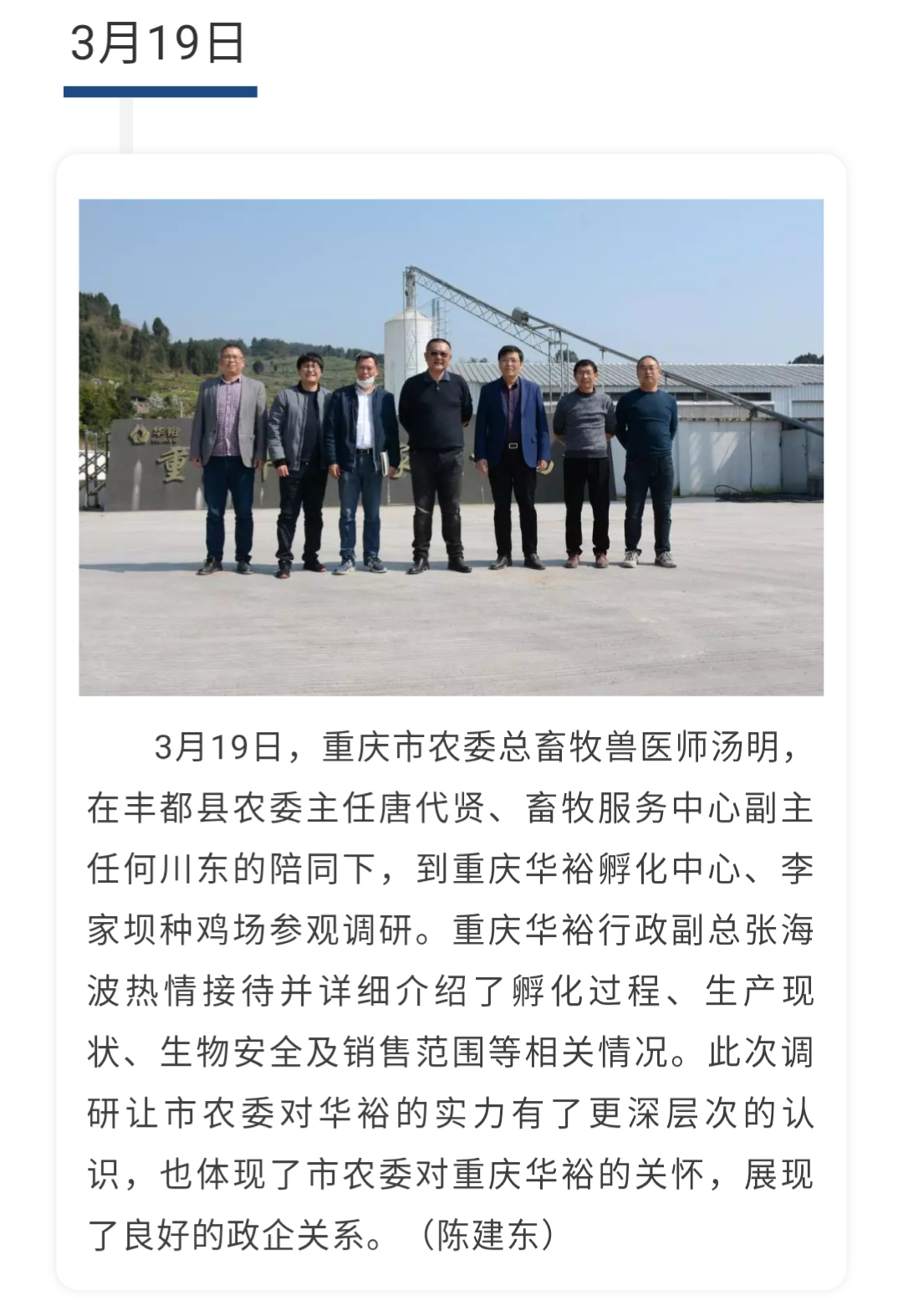 重慶市農委總畜牧獸醫師湯明一行蒞臨重慶華裕