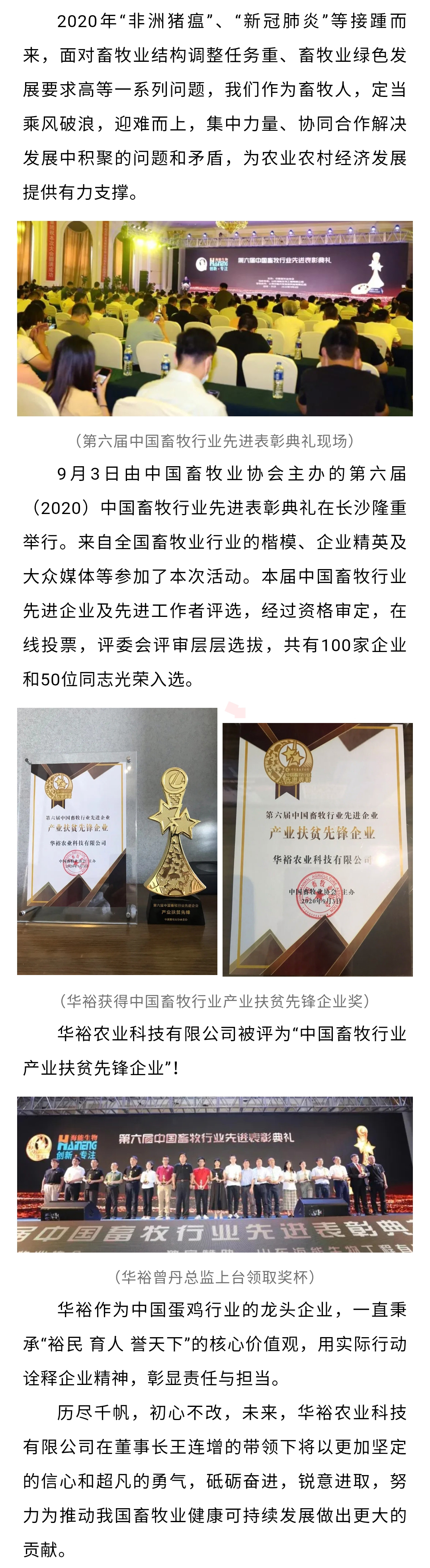 熱烈祝賀華裕農業科技有限公司獲得“第六屆中國畜牧行業先進企業”榮譽稱號