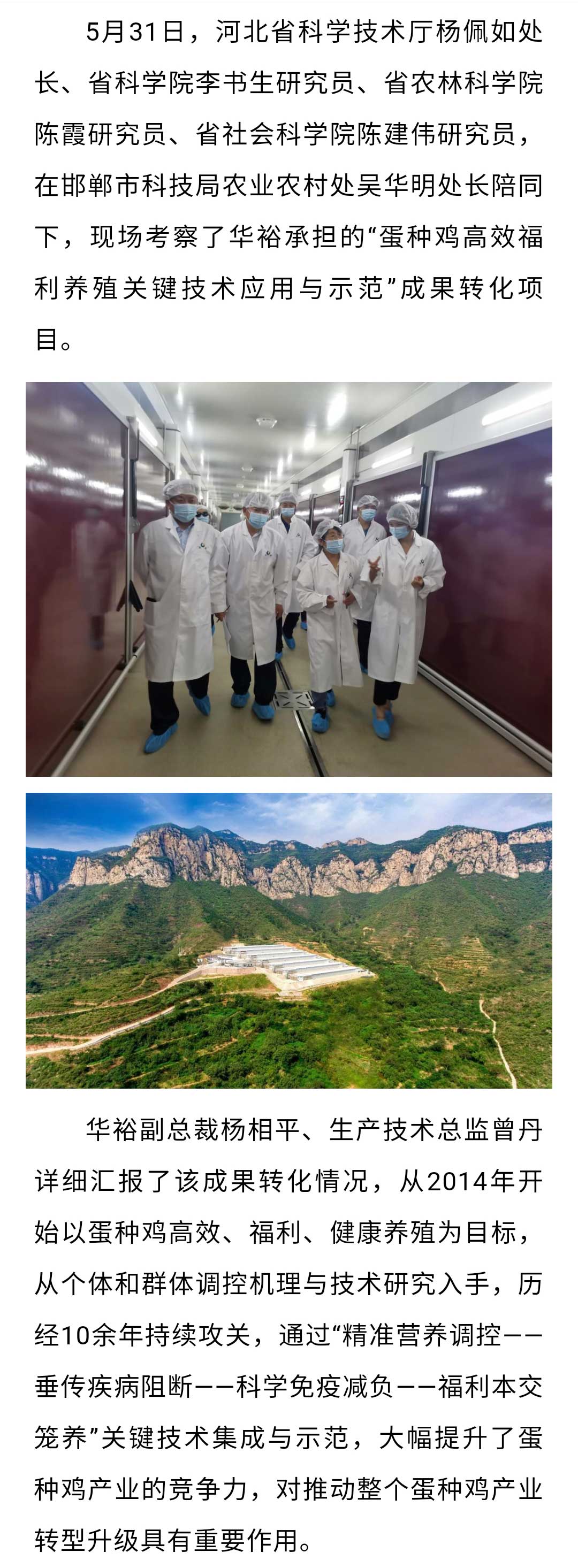 河北省科學技術廳楊佩如處長一行現場考察華裕成果轉化項目