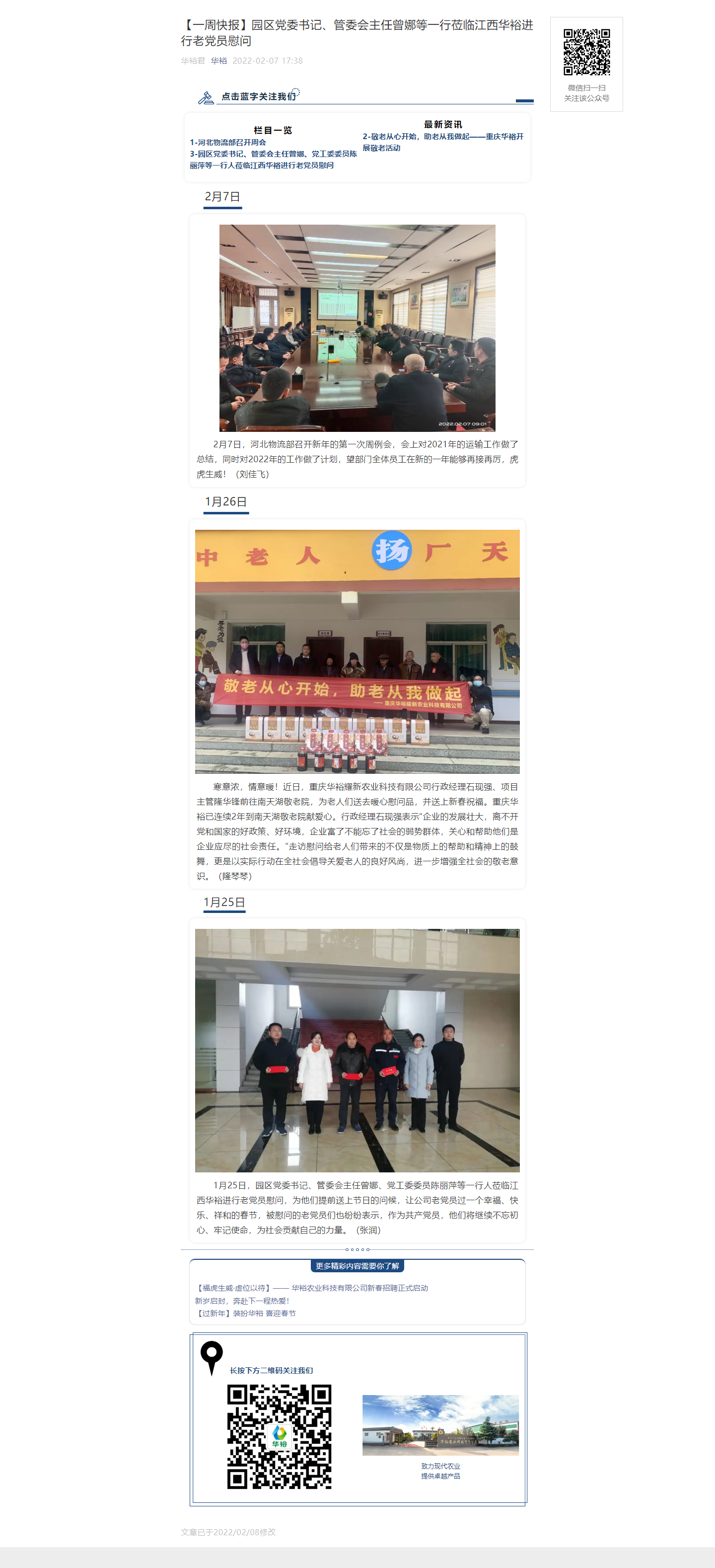 【一周快報】園區(qū)黨委書記、管委會主任曾娜等一行蒞臨江西華裕進行老黨員慰問