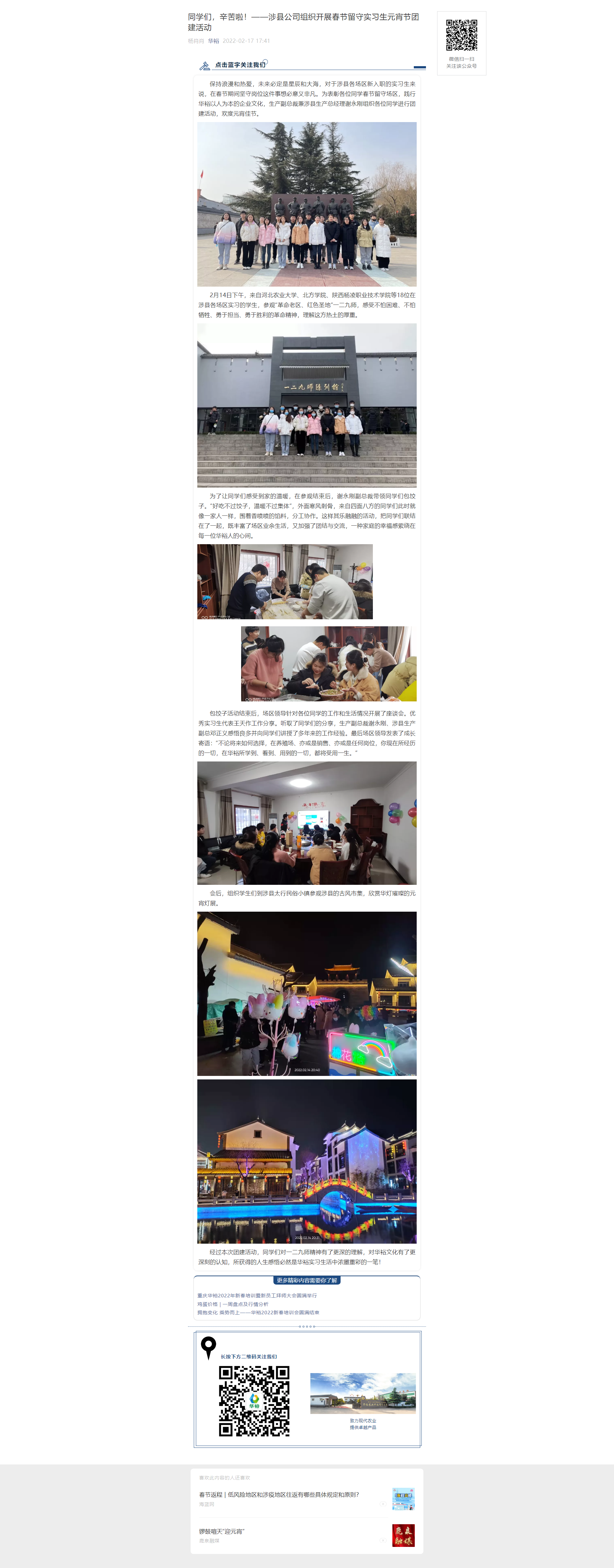 同學們,辛苦啦!——涉縣公司組織開展春節留守實習生元宵節團建活動