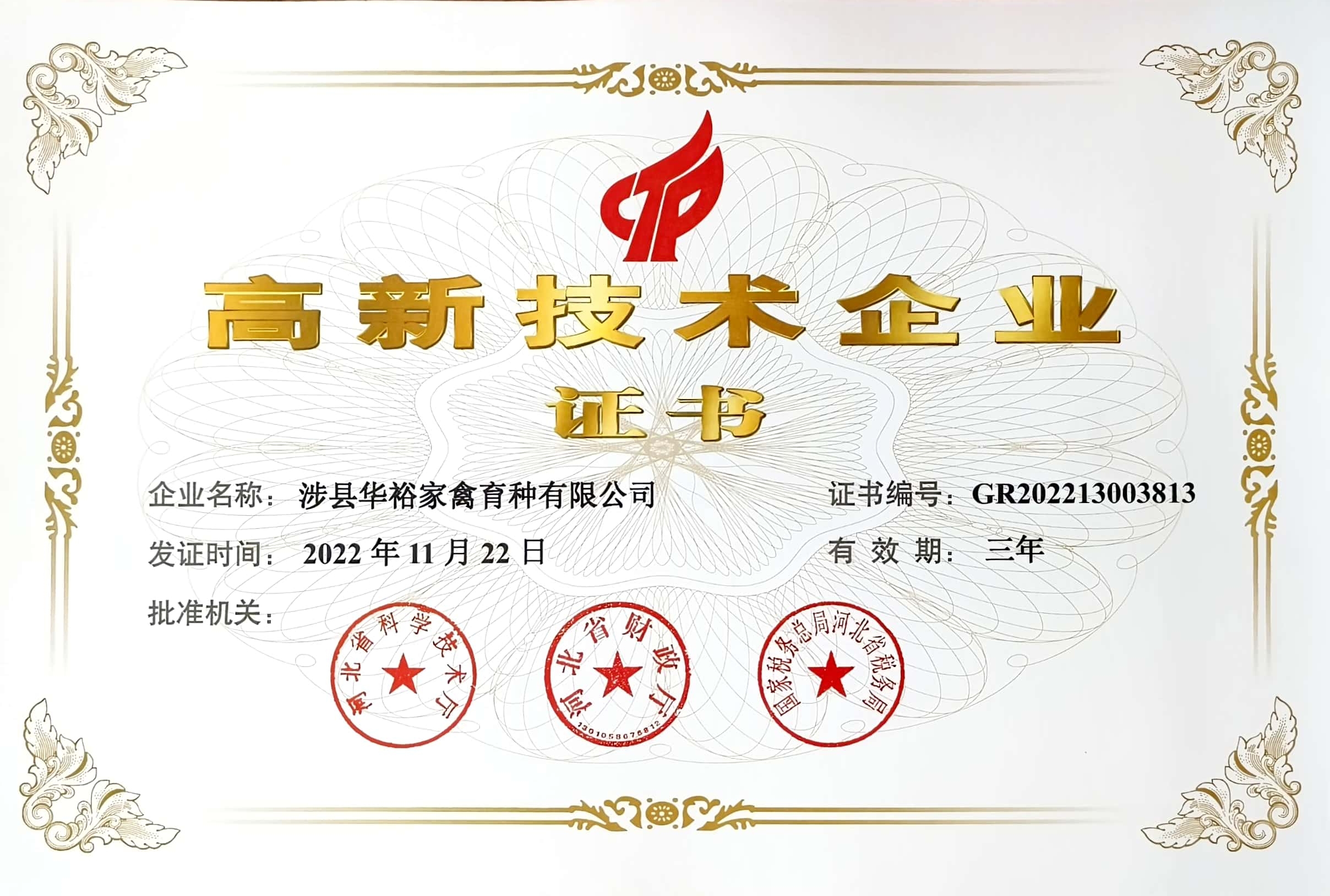 喜報|涉縣華裕家禽育種有限公司榮獲“高新技術(shù)企業(yè)” 稱號